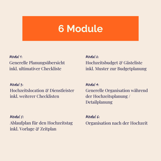 Dafür gibt es meine Produkte, die dir die passende Unterstützung bei deiner Hochzeitsplanung liefern und dich einfach selbst zum Planungsprofi machen. Und das besondere daran - du kannst die Kosten direkt ins Budget mit einplanen und deine Gäste werden erstaunt sein, was ihr am Ende auf die Beine gestellt habt.